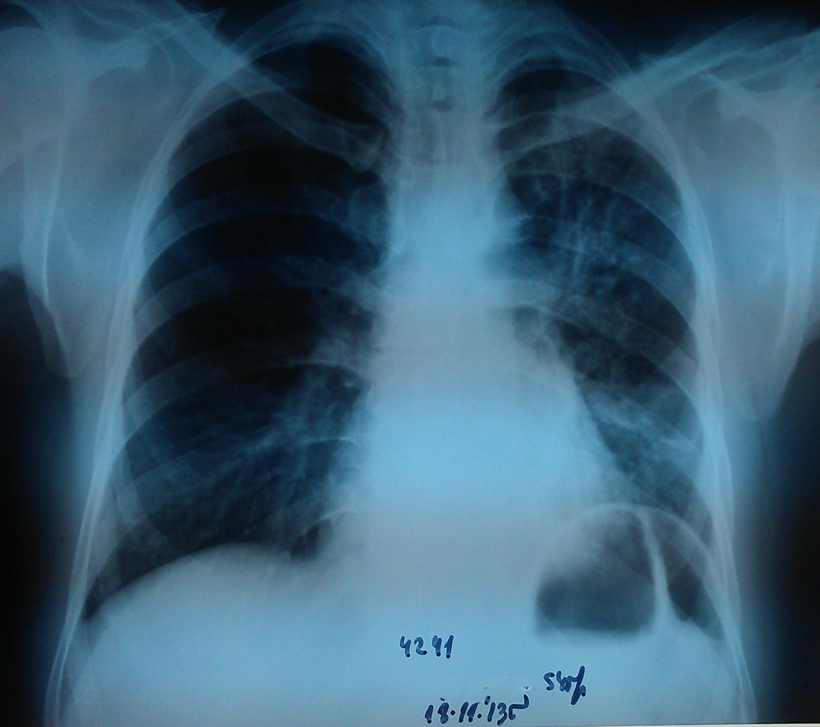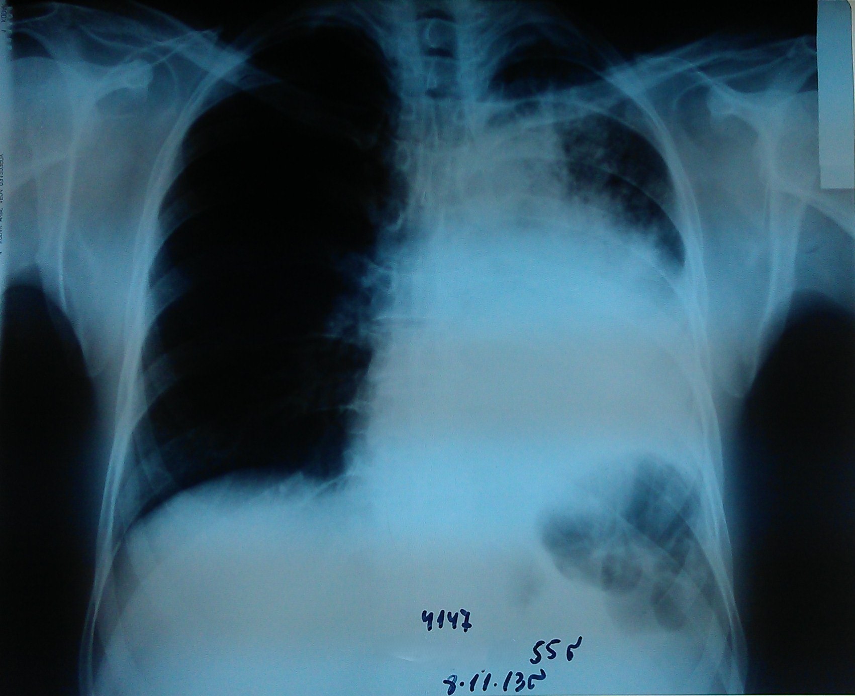 აღინიშნება მარცხენა ფილტვის თითქმის სრული ატელექტაზი.