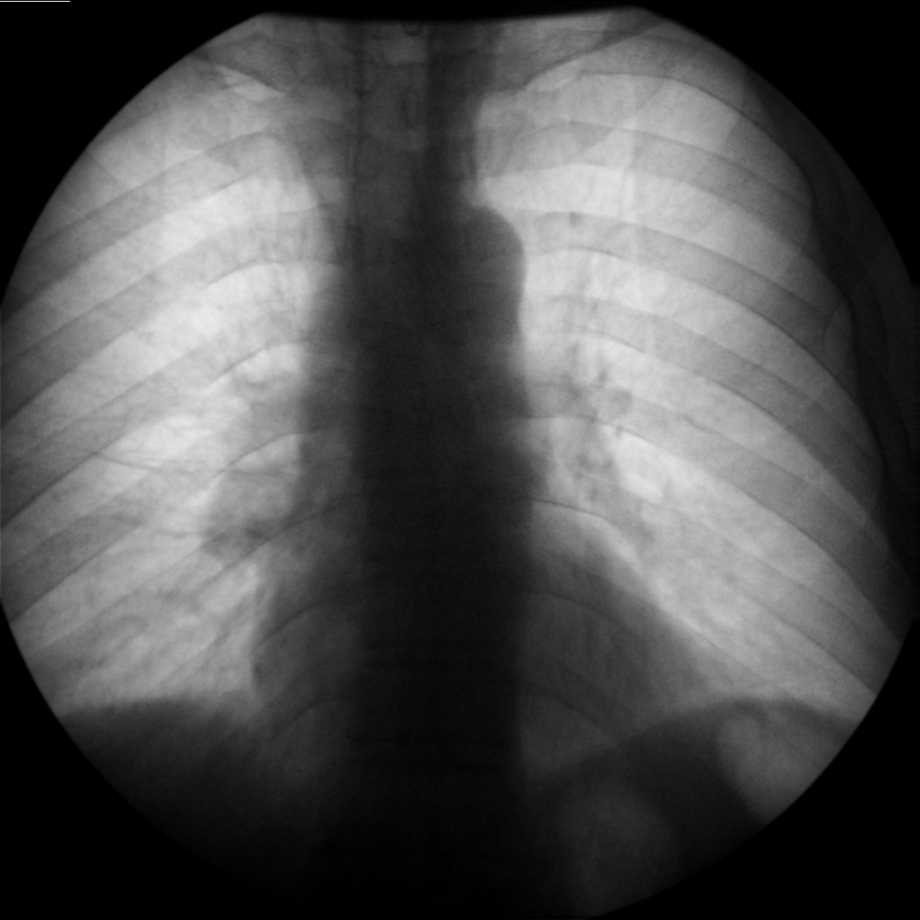 მარცხენა მთავარი ბრონქის სანათური თითქმის მთლიანად დახშულია სიმსივნური წარმონაქმნით.