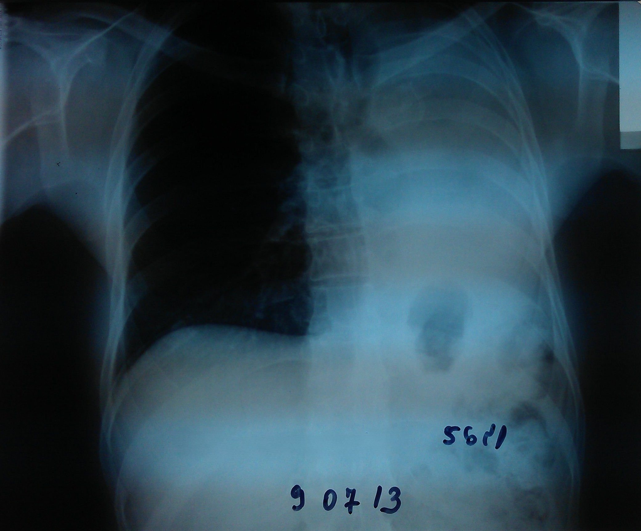 აღინიშნება მარცხენა მთავარი ბრონქის ოკლუზია სიმსივნური წარმონაქმნით