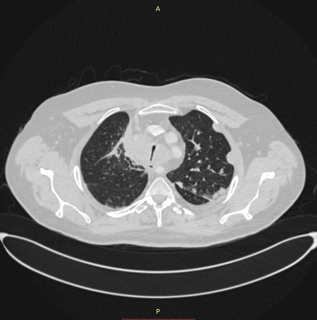 პაციენტი, 41 წლის მამაკაცი, 2015 წლის ოქტომბერში დაესვა მარჯვენა ფილტვის ბრტყელუჯრედოვანი გაურქოვანებელი კარცინომის დიაგნოზი. მიუხედავად ქიმიოთერაპიისა და რადიაციული თერაპიისა, პაციენტის კლინიკო-ლაბორატორიული და რადიოლოგიური მონაცემები გაუარესდა. გაუჩნდა სტრიდორული სუნთქვა, მოხრჩობის შეგძნება, ძლიერი ქოშინი მოსვენებულ მდგომარეობაშიც. 2016 წლის 1 სექტემბრის კტ კვლევით ინახა ტრაქეის გარშემო მუფტასავით შემოხვეული გადიდებული ლიმფური კვანძების კონგლომერატი, რომლებიც კრიტიკულად ავიწროებენ ტრაქეის სანათურს. ქირურგების შეფასებით ტრაქეოსტომიული მილის ჩადგმა იყო შეუძლებელი. გადაწყდა სასიცოცხლო ჩვენებით ტრაქეის სტენტირება. პაციენტის დაინტუბირების შეუძლებლობის გამო მანიპულაცია ჩატარდა ადგილობრივი გაუტკივარებით. მანიპულაციამდე პაციენტს ჩაუტარდა სუნთქვითი ვარჯიში, რის შედეგადაც მან შესძლო სუნთქვის შეკავება 10 წმ-მდე ინდეფლატორით სტენტის გაშლის დროს. შედეგი იყო მყისიერი. პაციენტს გაუქრა სტრიდორი, სატურაცია აიწია 96-97%-მდე.